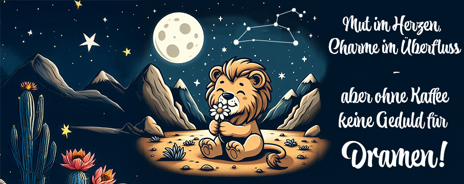 Motiv: Süßer Löwe im Comicstil mit Sternzeichen