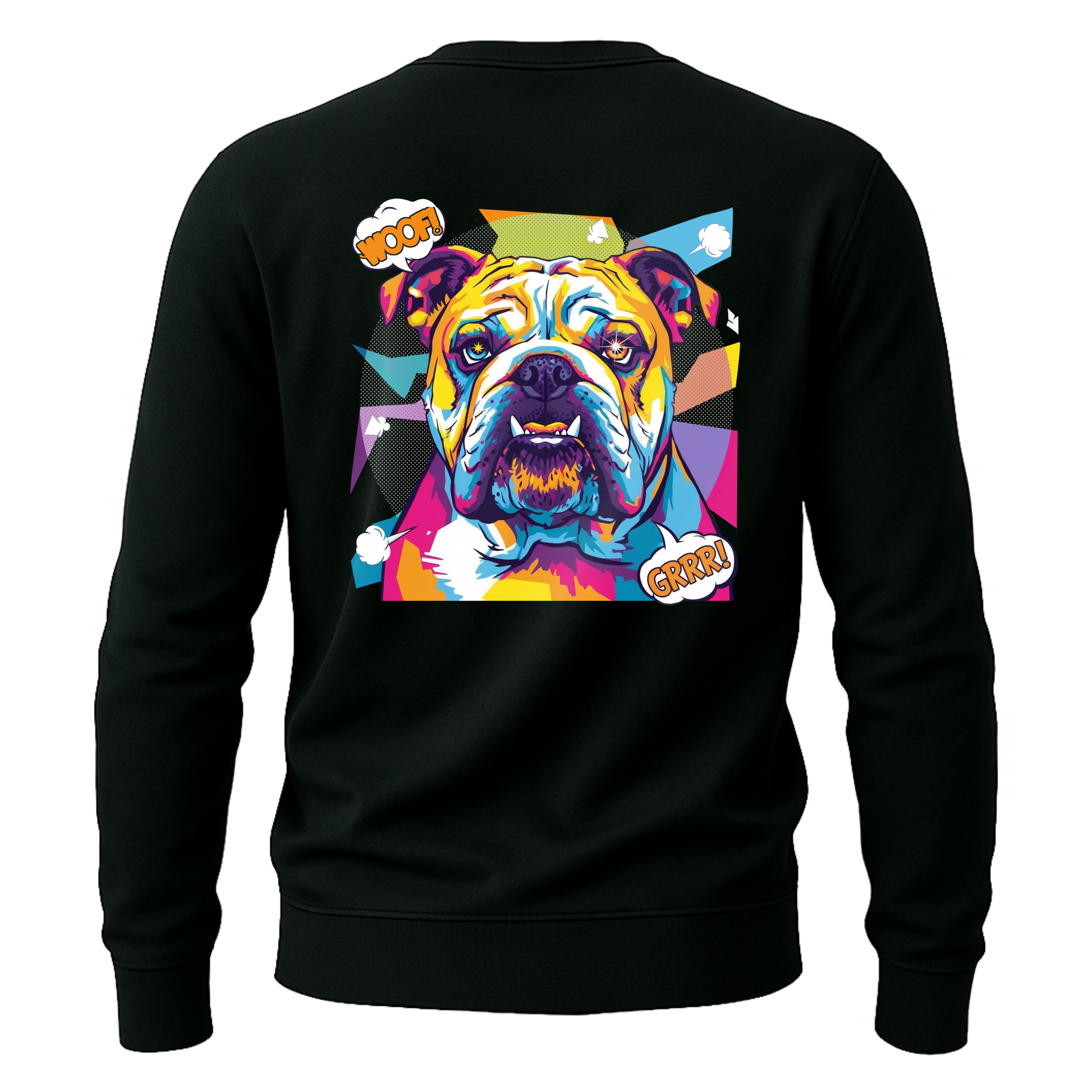 Der englische Bulldoggen PopArt Pullover von designfabrikanten vereint Kunst, Farbe und Street-Style in einem einzigartigen Design.